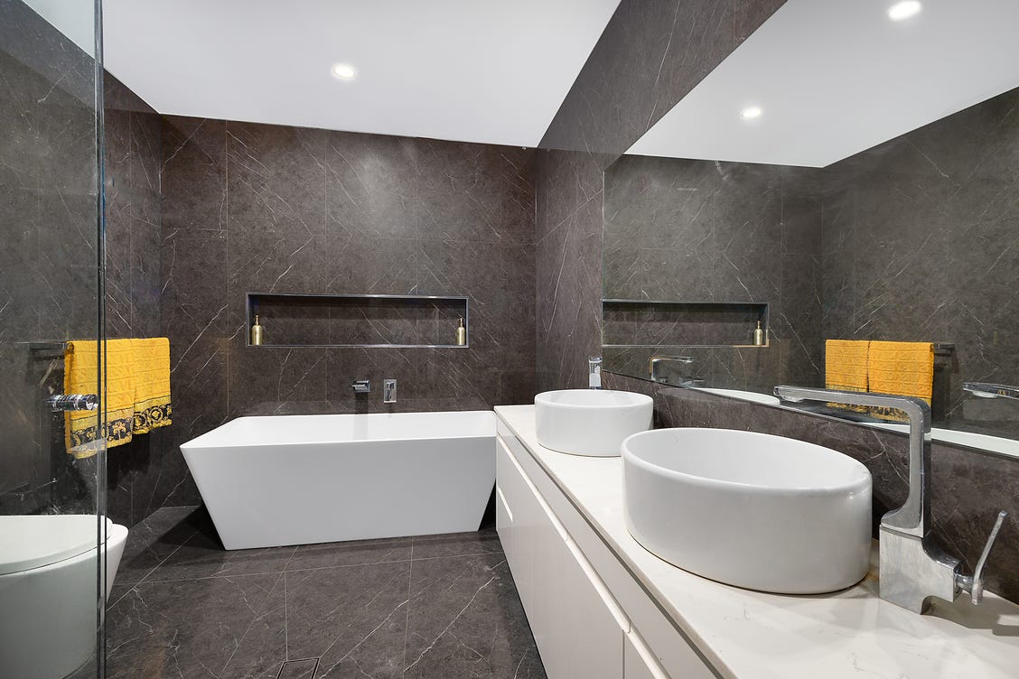 A precision-built geometric masterpiece in Australian charcoal stone.